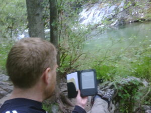 Relaxing with a book.